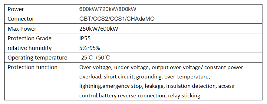 The 600kW-800kW can be configured with 10-12 charging terminals connectors, which can meet the maximum charging needs of 12 vehicles at the same time.