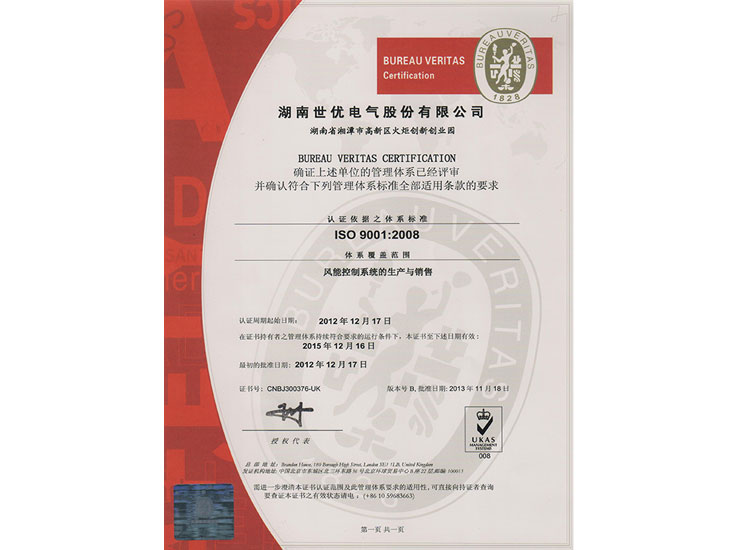 • ISO質(zhì)量管理體系認(rèn)證證書