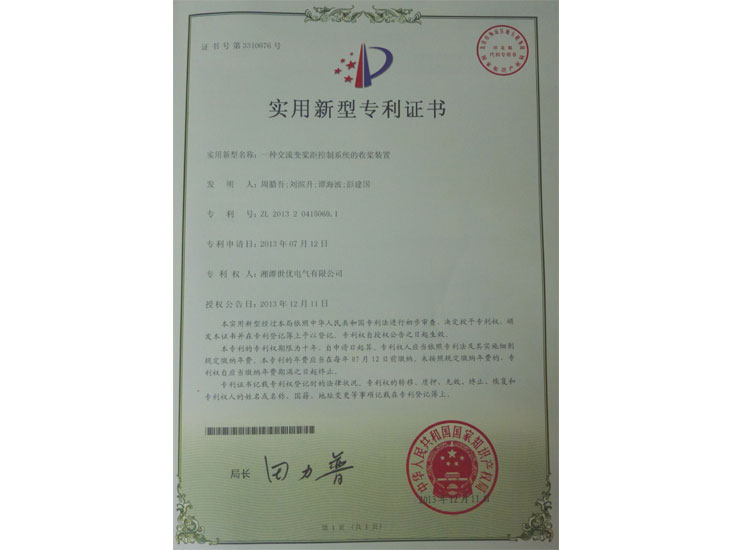 • 交流變槳距控制系統(tǒng)收槳裝置專利