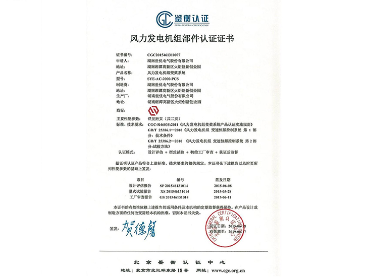 • 風(fēng)力發(fā)電機(jī)組變槳系統(tǒng)鑒衡認(rèn)證