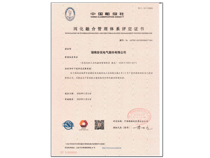 • 兩化融合管理體系評(píng)定證書